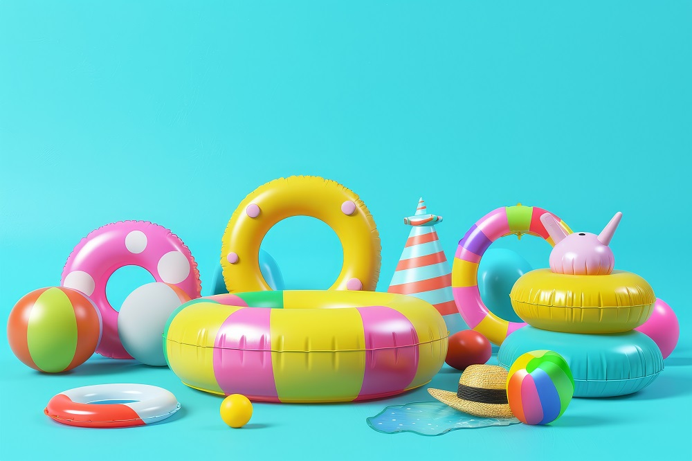 - Maty i koła dmuchane – w różnych kształtach i kolorach, idealne do relaksu i nauki balansu na wodzie.